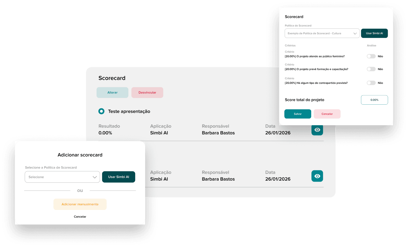 Uma página de edital integrada à plataforma, feita pra você organizar tudo de forma prática e transparente, recebendo e avaliando projetos no mesmo lugar.